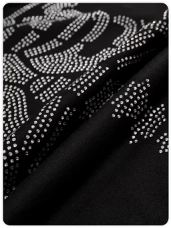 Kollyy Punk Black Skull Hotfix Rhinestone Halloween Top Hoodie & Sweatshirt