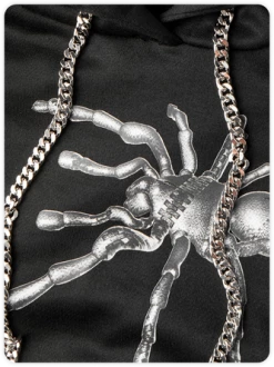 Kollyy Punk Black Graphic Hooded Metal Top Hoodie & Sweatshirt