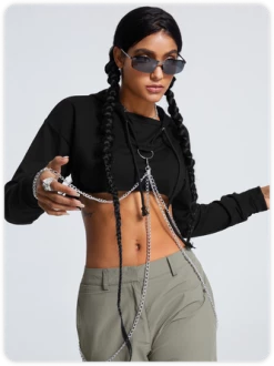 Kollyy Street Black Hooded Metal Chain Top Hoodie & Sweatshirt