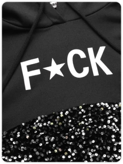 Kollyy Street Black Patchwork Glitter Graphic Top Hoodie & Sweatshirt