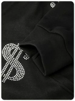 Kollyy Street Black Glitter Patchwork Hooded Top Hoodie & Sweatshirt