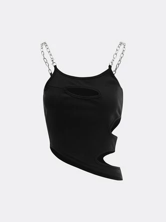 Kollyy Black Asymmetrical Design Cut Out Top Tank Top & Cami