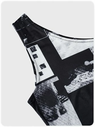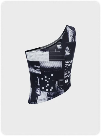 Kollyy Black One Shoulder Abstract Slim Top Tank Top & Cami