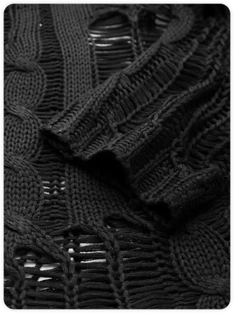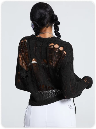 Kollyy Black Ripped Knit Top Sweater