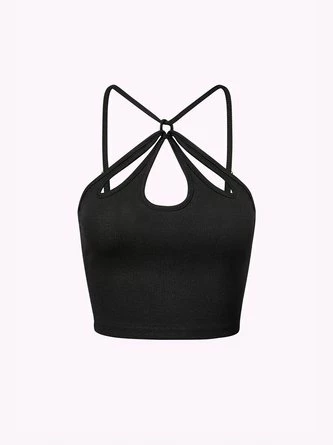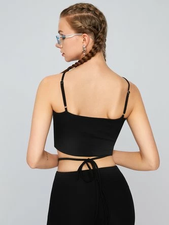 Kollyy offers stylish and concessional Tanks & Camis.. SPU: 48QAVE2IBEEA, Color: Black, Elasticity:High Elasticity, Activity:Party.