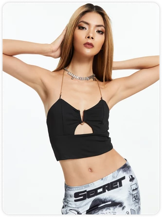 Buy Inexpensive Tanks & Camis at Kollyy online store, SPU: 48Q1KTA7EFC5D, Color: Black, Activity:Holiday, Sleeve Length:Gallus.