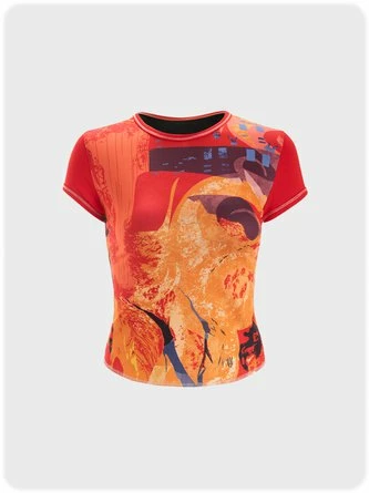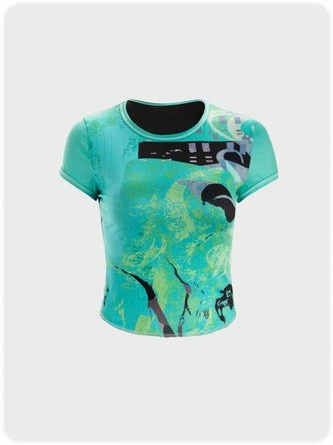 Buy Inexpensive T-shirt at Kollyy online store, SPU: 48Q1WSH5TCC27, Color: Green flower, Material:Polyester, Pattern:Printed.