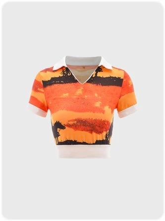Kollyy offers stylish and concessional T-shirt.. SPU: 48QPSH6F2E54, Color: Orange, Decoration/Process:Split Joint, Edition type:Tight.