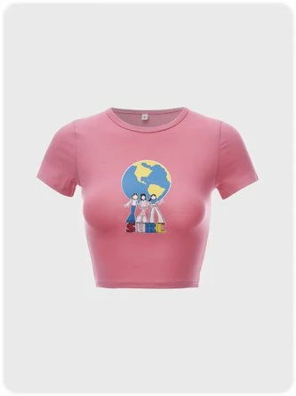 Kollyy offers stylish and concessional T-shirt.. SPU: 48Q1GSH8N94B2, Color: Pink, Waistlines:High Waist, Sleeve Length:Short sleeve.