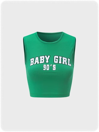 Come to Kollyy to buy Tops at a discounted price, SPU: 48Q4SH3PD5B4, Color: White Green, Neckline:Crew Neck, Silhouette:S-Line.