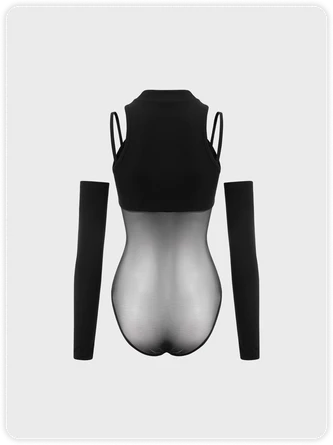 Kollyy Edgy Black Mesh Top Bodysuit
