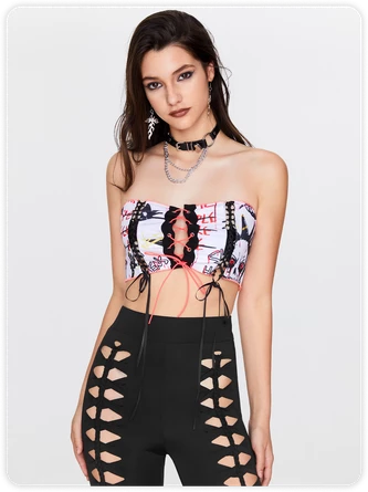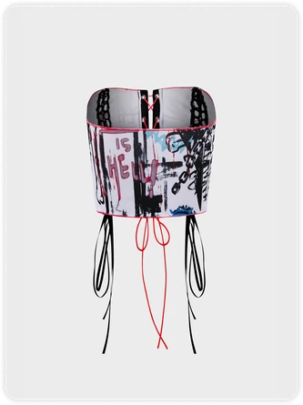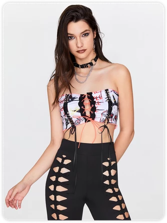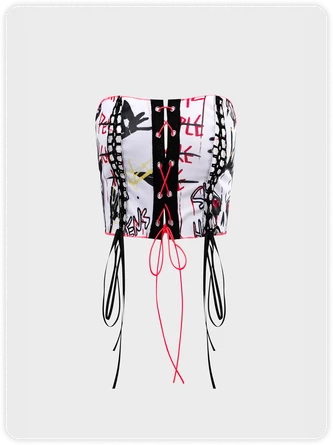 Be the first to review “Kollyy Edgy White Graffiti Lace Up Halloween Top Women Top” Cancel reply