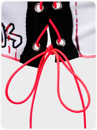 Kollyy Edgy White Graffiti Lace Up Halloween Top Women Top