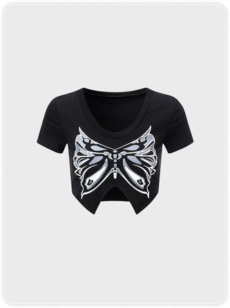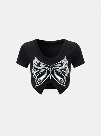 Affordable price buy T-shirt on Kollyy, SPU: 48QOSH35EAE4, Color: Black, Material:Polyester, Pattern:Butterfly.