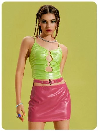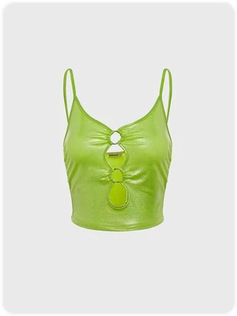 Kollyy Green Spaghetti Strap Cut Out Top Tank Top & Cami