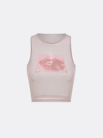 Kollyy Khaki Mouth Mesh Top Tank Top & Cami