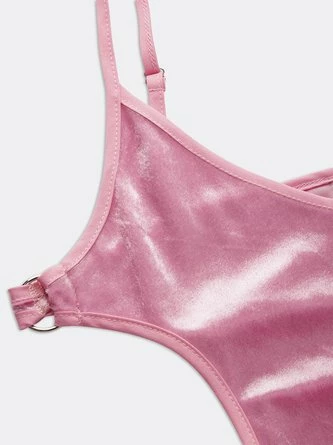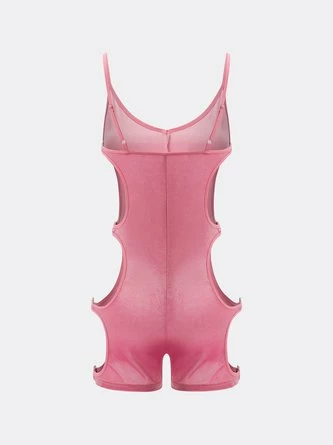 Kollyy Pink Cut Out Velvet Top Jumpsuit