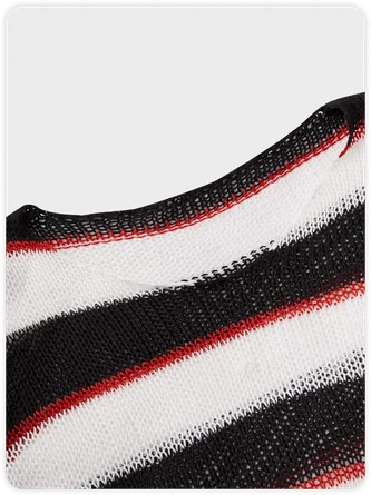 Come to Kollyy to buy Sweater at a discounted price, SPU: 48QKSW7T0DB8, Color: Black, Pattern:Striped, Edition type:Loose.