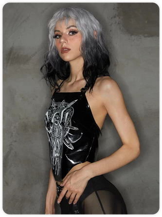 Be the first to review “Kollyy Punk Black Graphic Leather Halloween Top Tank Top & Cami” Cancel reply