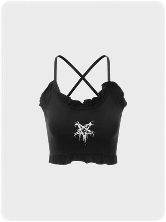 Be the first to review “Kollyy Punk Black Ruffles Star Halloween Top Tank Top & Cami” Cancel reply