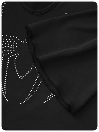 Kollyy Punk Black V-Neck Hotfix Rhinestone Top T-Shirt