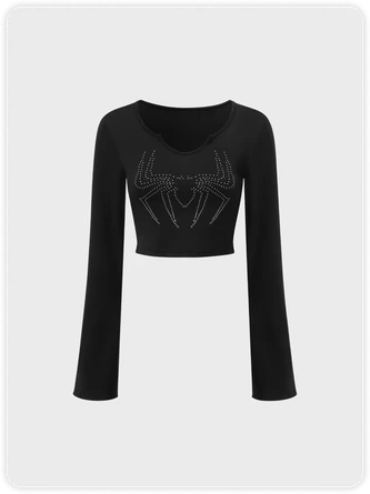 Be the first to review “Kollyy Punk Black V-Neck Hotfix Rhinestone Top T-Shirt” Cancel reply