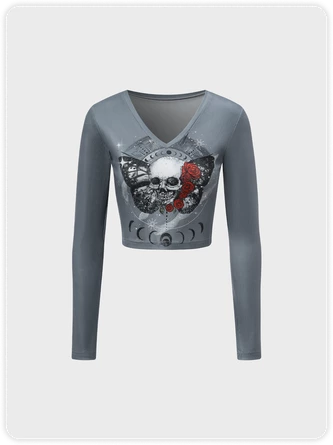 Be the first to review “Kollyy Punk Gray Skull V-Neck Top T-Shirt” Cancel reply