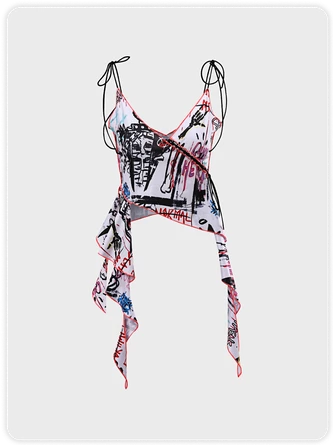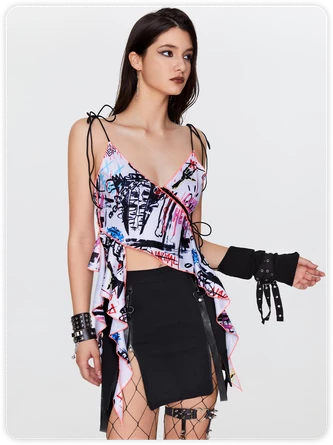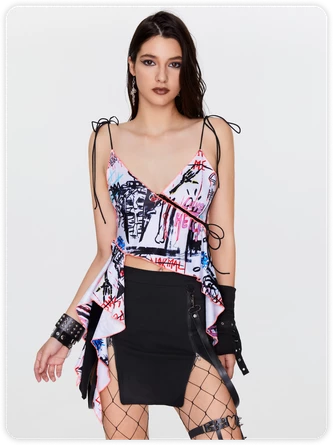 Be the first to review “Kollyy Punk White Lace Up Graffiti Asymmetrical Design Halloween Top” Cancel reply