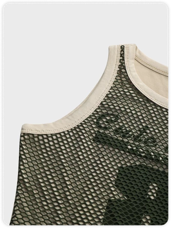 Kollyy Street Army Green Letter Double Layer Back To School Top Tank Top & Cami