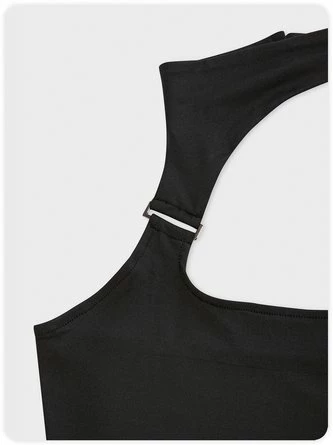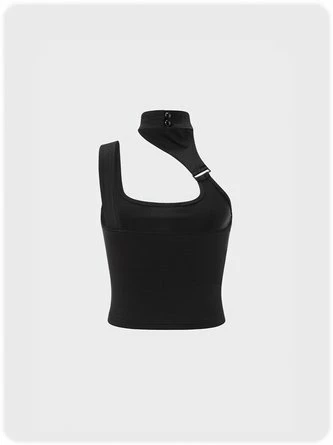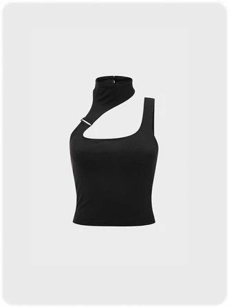 Kollyy Street Black Asymmetrical Design Metal Top Tank Top & Cami