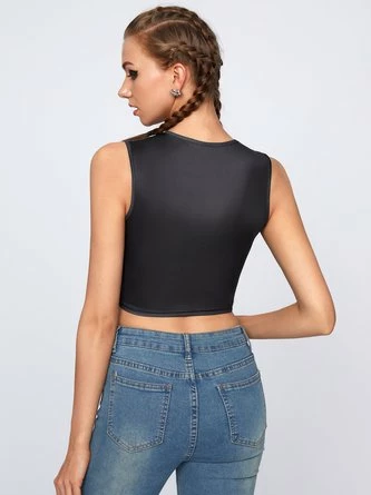 Buy Inexpensive Tanks & Camis at Kollyy online store, SPU: 48Q1DVE37394F, Color: Black, Material:Polyester, Thickness:Lightweight.