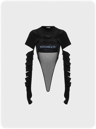 Kollyy Street Black Graphic Patchwork Cut Out Top Bodysuit