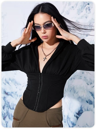 Kollyy Street Black Hoodie Corset Top Hoodie & Sweatshirt
