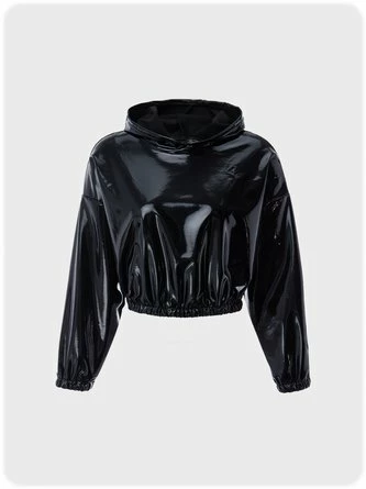 Kollyy Street Black Pu Hooded Top Hoodie & Sweatshirt