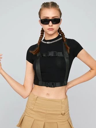 Be the first to review “Kollyy Street Black Slim Buckle Top T-Shirt” Cancel reply