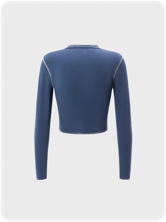 Affordable price buy Tops on Kollyy, SPU: 48Q1ITO8M03D3, Color: Blue, Neckline:Crew Neck, Clothes Length:Crop.