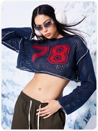 Kollyy offers stylish and concessional Sweater.. SPU: 48Q2SWA0DEE1, Color: Deep Blue, Activity:Daily, Clothes Length:Crop.
