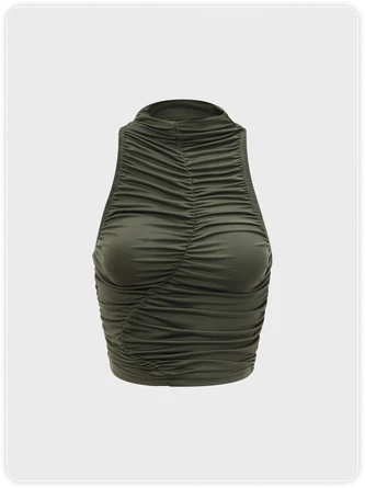 Kollyy Street Green Wrinkled Top Tank Top & Cami