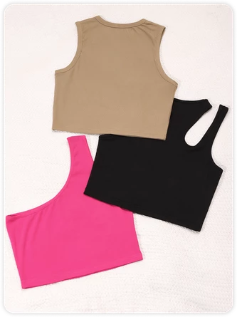 Kollyy Three-Piece Set Street Basic Pac Asymmetrical Design Top Tank Top & Cami