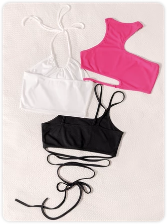 Kollyy Three-Piece Set Y2K Cut Out Asymmetrical Design Top Tank Top & Cami