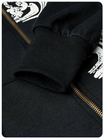 Kollyy Punk Black Graphic Hooded Metal Top Hoodie & Sweatshirt