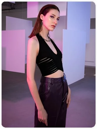 An exclusive offer for you——Affordable prices at Kollyy store, SPU: 48QPVEC93ED1, Color: Black, Style:Sexy, Clothes Length:Crop.