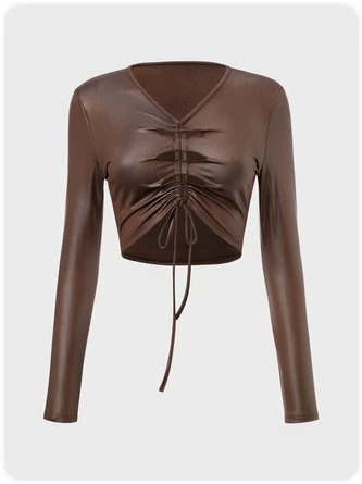 Come to Kollyy to buy Tops at a discounted price, SPU: 48Q10SHA95D03, Color: Light Brown, Theme:Winter, Material:Pu leather.
