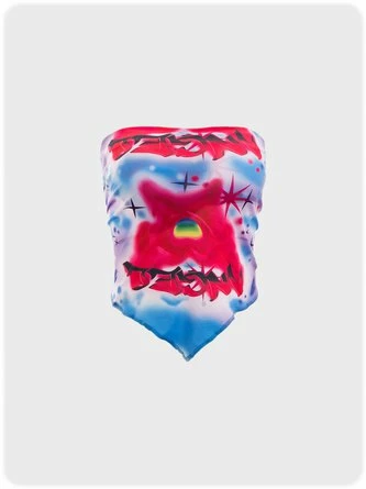 Kollyy Sweet Deep Red Cartoon Color Block Top Tank Top & Cami