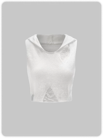 Kollyy White Knit Ripped Top Sweater
