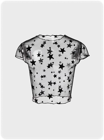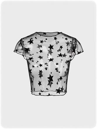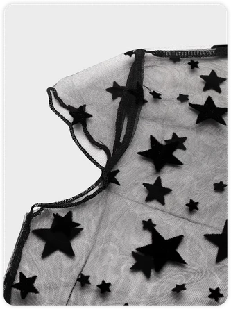 Kollyy Y2K Black Mesh Star Party Top T-Shirt