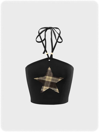 Be the first to review “Kollyy Y2K Black Srar Patchwork Tie Up Top Tank Top & Cami” Cancel reply