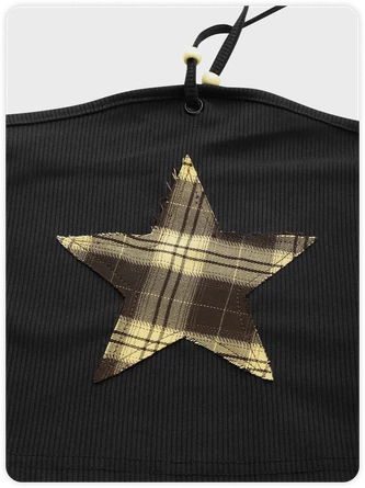 Kollyy Y2K Black Srar Patchwork Tie Up Top Tank Top & Cami