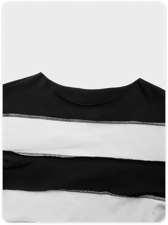Kollyy Y2K Black Striped Bell Sleeves Inside-Out Top T-Shirt