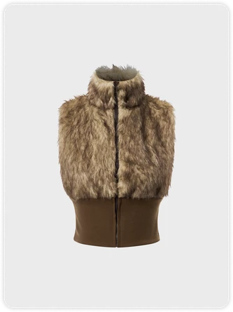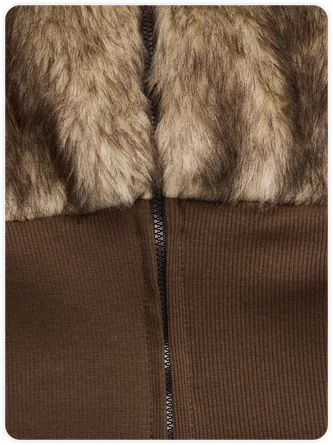 Kollyy Y2k Brown Patchwork Sherpa Top Outwear
